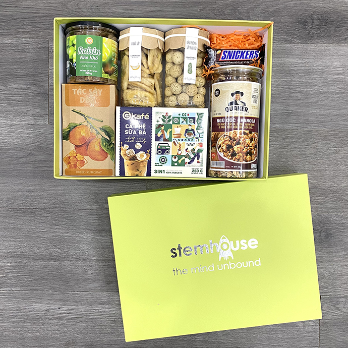 Hộp quà Tết doanh nghiệp được thiết kế sang trọng, kết hợp các sản phẩm thực phẩm cao cấp – tốt cho sức khỏe, phù hợp làm quà Tết tặng khách hàng, đối tác, nhân viên. Sản phẩm nhận in logo – cá nhân hóa theo yêu cầu, giúp nâng cao hình ảnh thương hiệu trong dịp năm mới.
