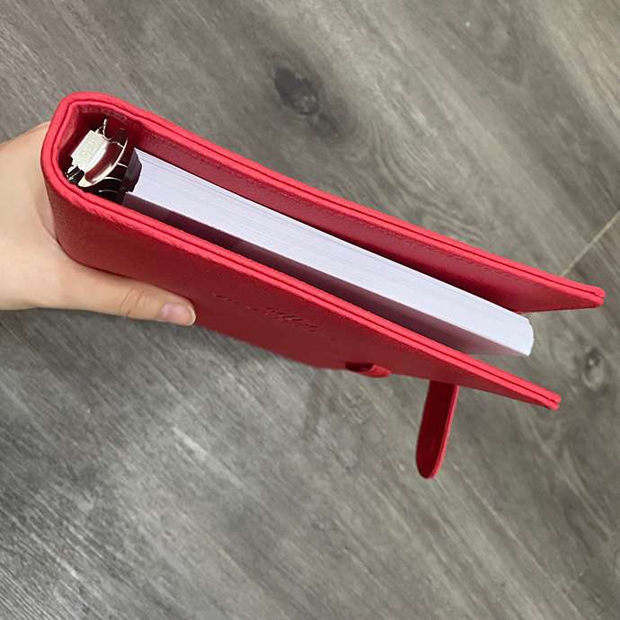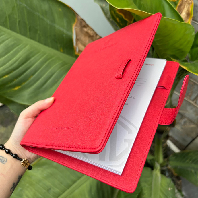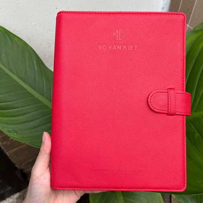 - Sổ bìa da có quai gài là mẫu sổ tay cao cấp đẹp và sang trọng nhất dùng làm quà tặng khách hàng và dành cho nhân viên công ty.