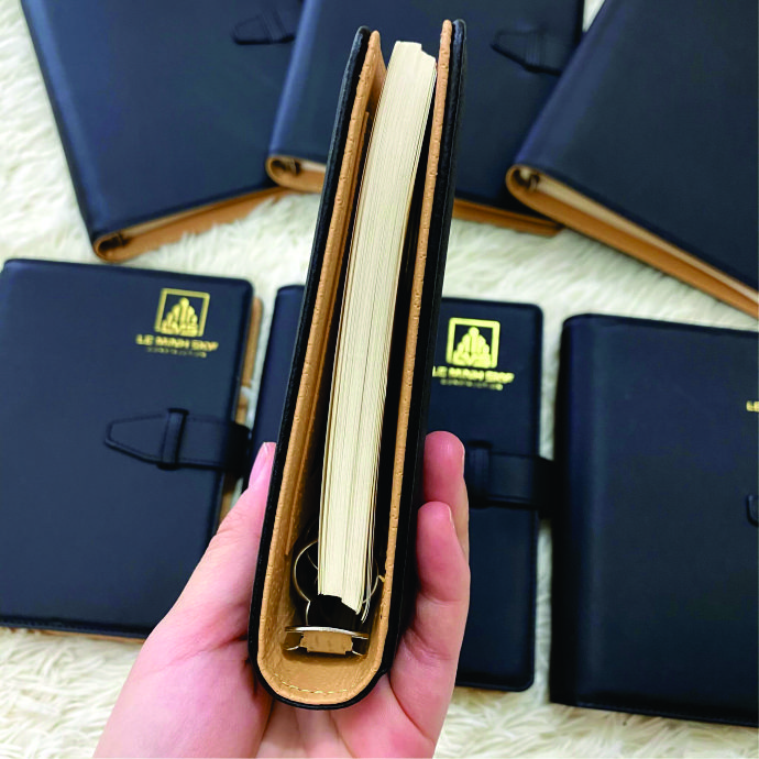 Sổ tay bìa da màu đen luôn là lựa chọn hàng đầu cho các đơn vị muốn xây dựng hình ảnh chuyên nghiệp. Với thiết kế thanh lịch, chất liệu da PU mềm mịn, sản phẩm phù hợp sử dụng trong môi trường văn phòng, hội họp, sự kiện hay dành tặng đối tác, khách hàng.