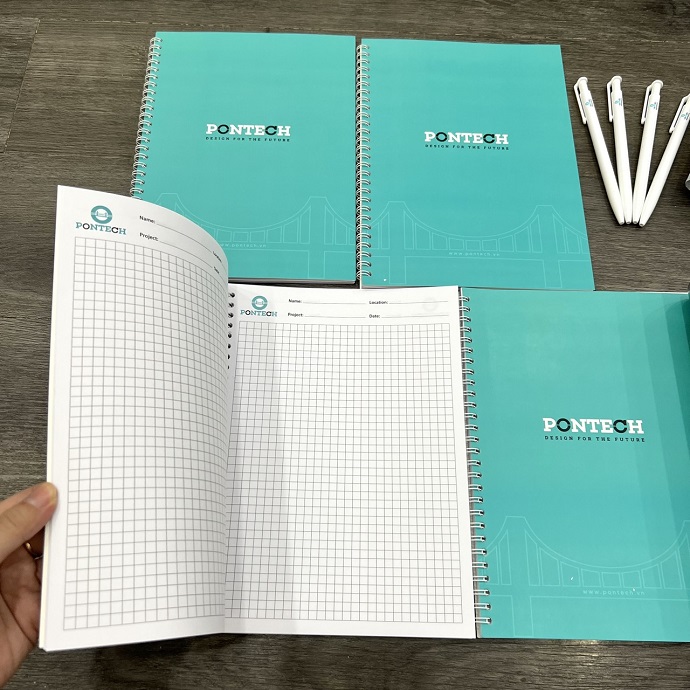 Sổ tay lò xo in logo pontech
