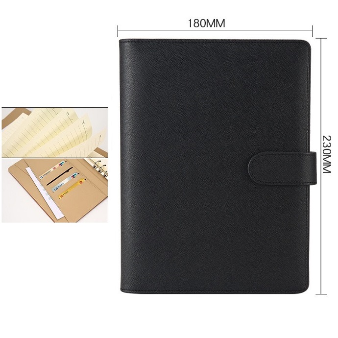 Chất liệu da PU mềm mịn giúp bề mặt sổ đẹp và bền theo thời gian, dễ lau và khó bong tróc. Kiểu đóng mở bằng khoá gài chắc chắn tạo cảm giác chắc tay khi sử dụng.