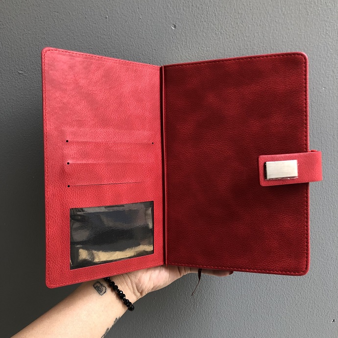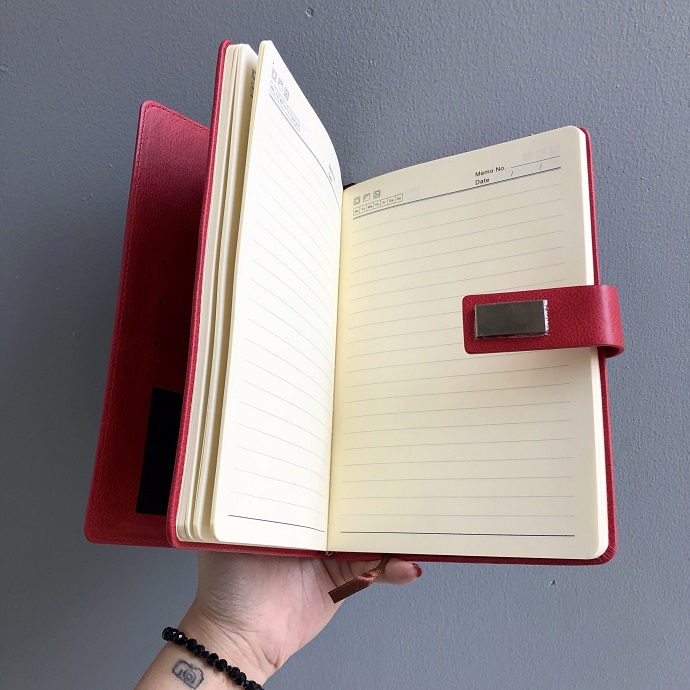 Sổ tay bìa da đỏ mang thiết kế sang trọng và mạnh mẽ, phù hợp cho doanh nhân, nhân viên văn phòng, giáo viên, sinh viên hoặc dùng ghi chép cá nhân. Chất liệu bìa da tạo cảm giác cầm chắc tay và bền bỉ theo thời gian.