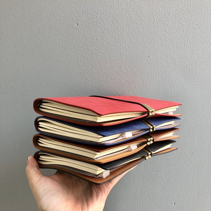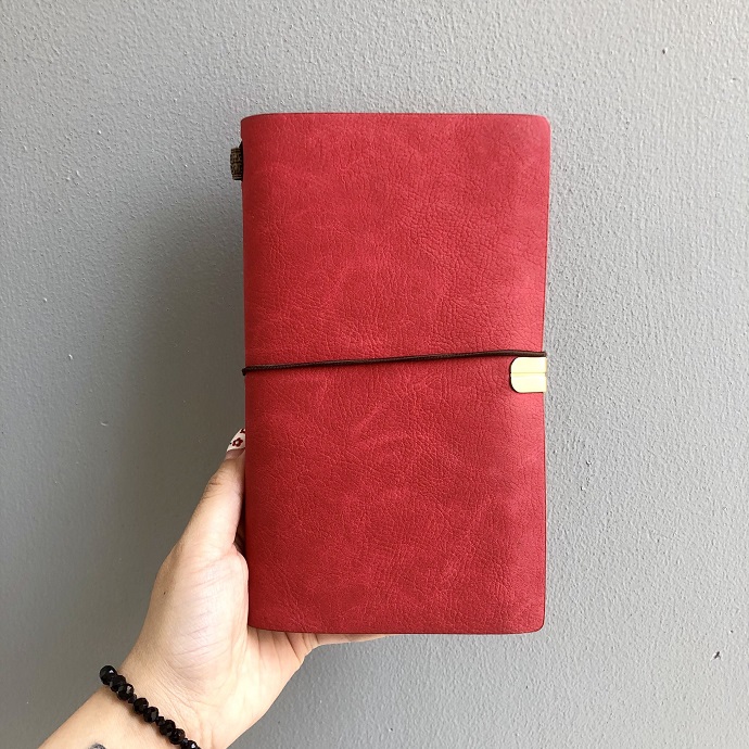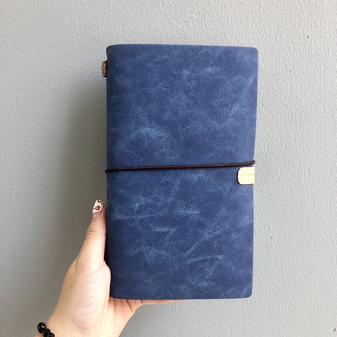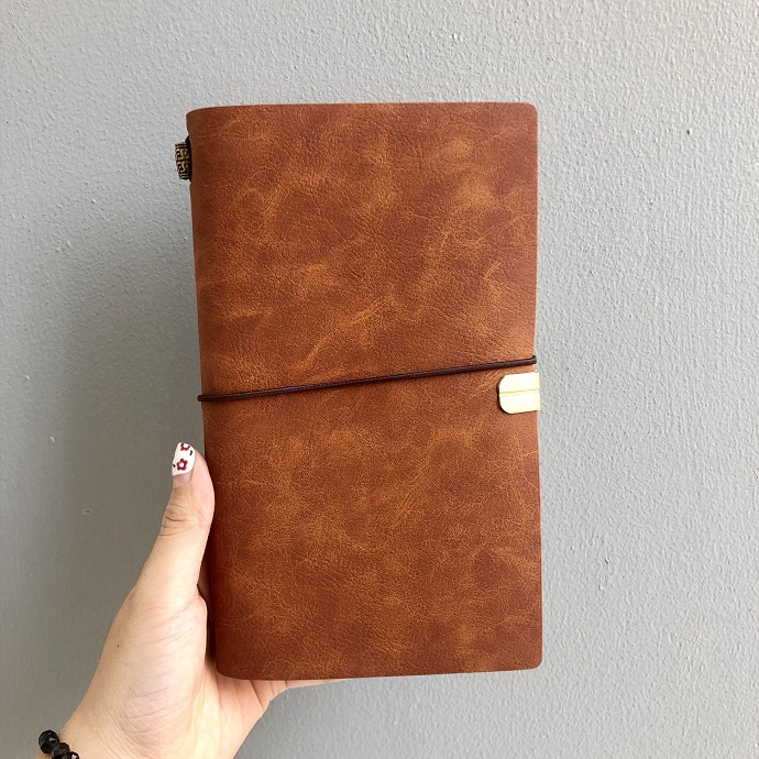 Mẫu sổ da cao cấp thiết kế theo kiểu nhật ký du lịch (travel journal), phù hợp ghi chép cá nhân hoặc làm quà tặng tinh tế.