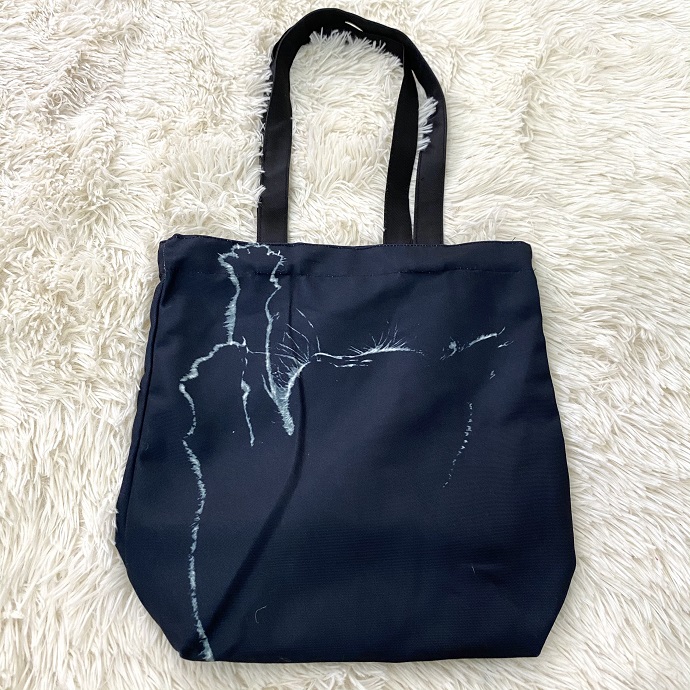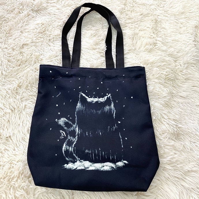 Túi tote vải canvas đen in hình mèo nghệ thuật, phong cách độc đáo, chất liệu bền đẹp, thích hợp dùng hàng ngày hoặc làm quà tặng ấn tượng.