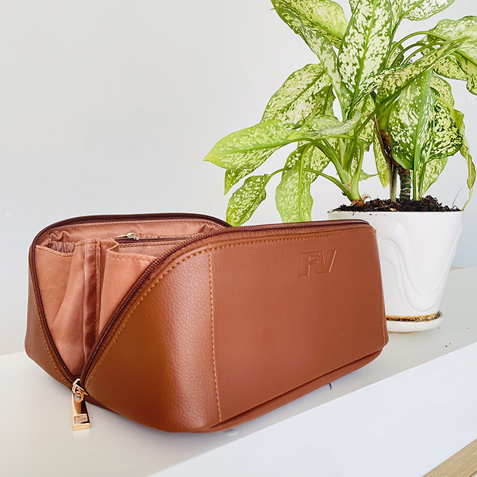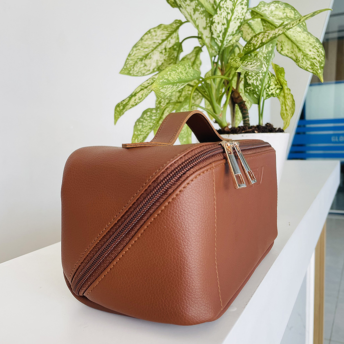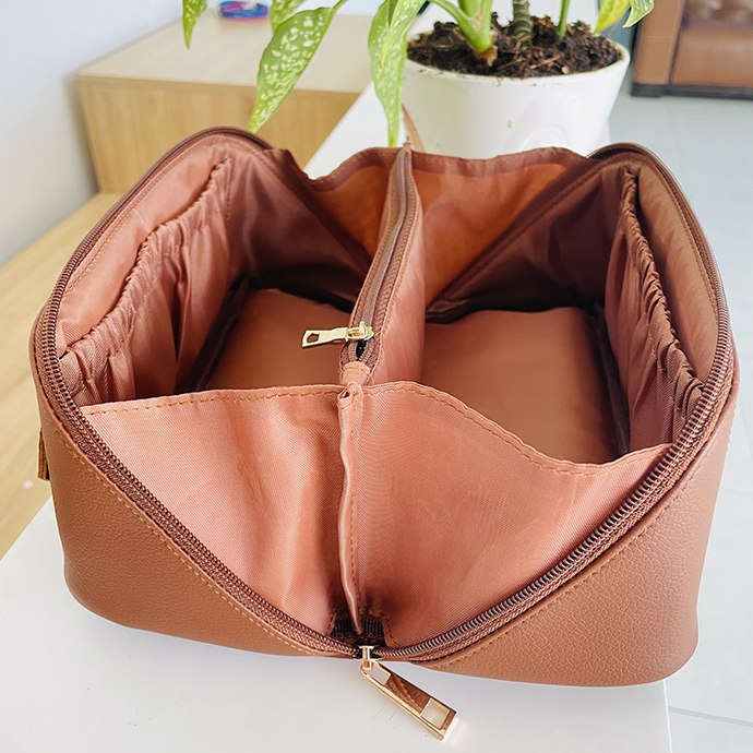 - Tay cầm tiện lợi, bền bỉ - Khoá kéo của thiết kế mở túi du lịch trang điểm hợp lí.
