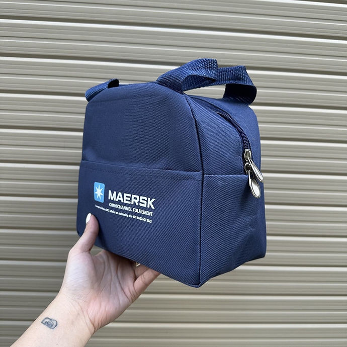 Túi giữ nhiệt Maersk màu xanh navy là mẫu quà tặng doanh nghiệp hiện đại, tiện lợi và tinh tế. Với thiết kế gọn nhẹ, chất liệu vải dày dặn cùng lớp lót giữ nhiệt cao cấp, sản phẩm giúp bảo quản thực phẩm, nước uống hiệu quả và thể hiện hình ảnh chuyên nghiệp của doanh nghiệp trong các sự kiện tri ân hoặc hoạt động nội bộ.