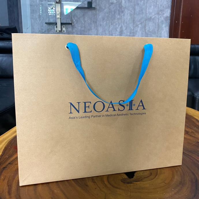 Túi giấy kraft tay xách ruy băng in logo sang trọng là giải pháp bao bì thân thiện môi trường, thích hợp dùng trong sự kiện, hội nghị, quà tặng doanh nghiệp.