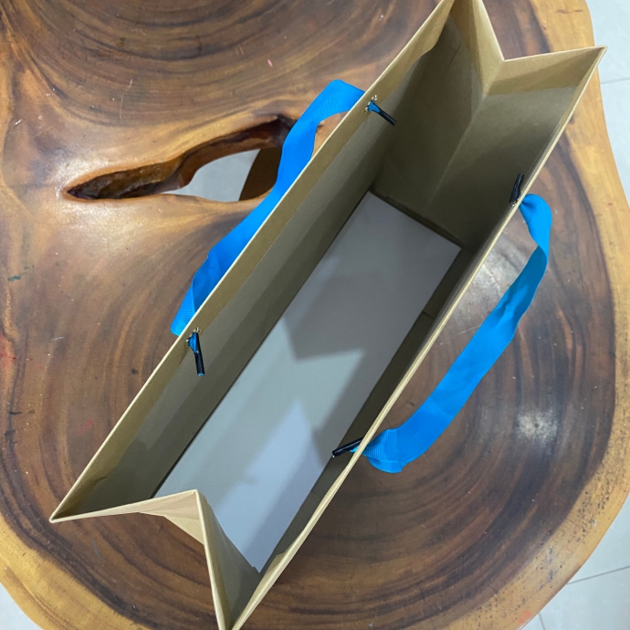 Túi giấy kraft tay xách ruy băng in logo là sản phẩm bao bì quà tặng cao cấp, thiết kế tối giản nhưng sang trọng. Chất liệu giấy kraft thân thiện môi trường, phối tay xách ruy băng xanh chắc chắn, phù hợp với xu hướng tiêu dùng hiện đại, tăng tính chuyên nghiệp và quảng bá thương hiệu hiệu quả.