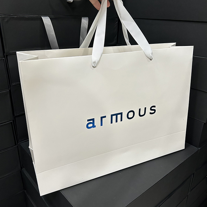 Túi giấy cao cấp tay xách ruy băng trắng in logo thiết kế tối giản, sang trọng, phù hợp cho shop thời trang, mỹ phẩm và quà tặng doanh nghiệp.
