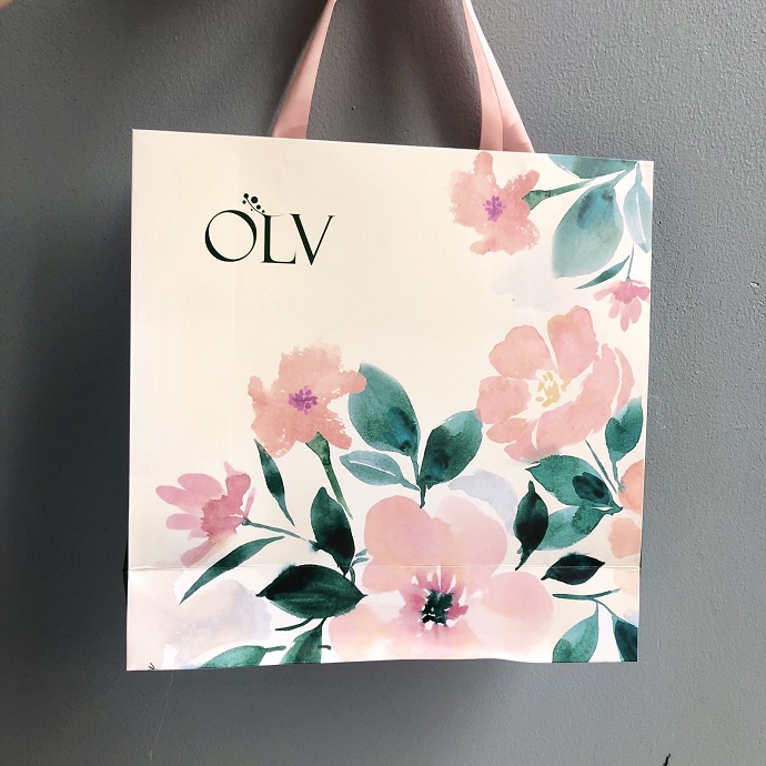 Túi giấy hoa pastel sang trọng với họa tiết in sắc nét, quai ruy băng mềm mại. Phù hợp đựng quà, mỹ phẩm, phụ kiện thời trang và in logo thương hiệu.