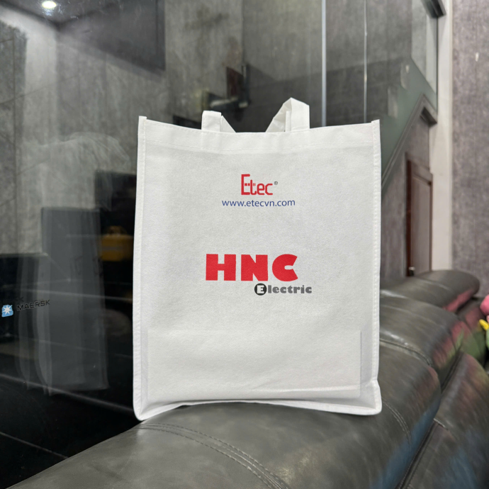 Túi vải không dệt in logo Etec – lựa chọn phổ biến trong các hội nghị, sự kiện công ty. Thiết kế gọn nhẹ, tiện lợi, giúp nâng cao hình ảnh thương hiệu khi trao tặng cho khách mời hoặc đối tác.