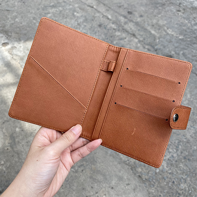 Ví đựng hộ chiếu (passport cover) là phụ kiện không thể thiếu trong mỗi chuyến đi. Mẫu ví da PU màu nâu sáng với vân caro hiện đại, kết hợp nút bấm chắc chắn, vừa bảo vệ hộ chiếu, vừa mang lại sự tinh tế và chuyên nghiệp.