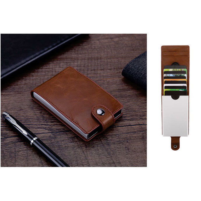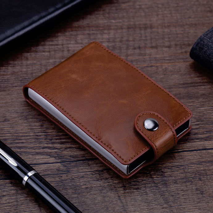 Hộp đựng danh thiếp da PU có nắp bấm là mẫu sản phẩm kết hợp giữa vẻ đẹp cổ điển và sự tiện lợi hiện đại. Thiết kế bo góc mềm mại, nắp bấm kim loại chắc chắn giúp bảo vệ danh thiếp khỏi cong, trầy xước hoặc thất lạc.