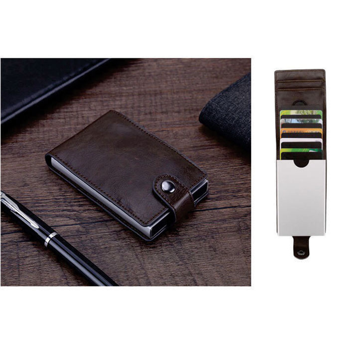 Hộp đựng danh thiếp da PU có nắp bấm mang phong cách cổ điển, lịch lãm, được thiết kế từ chất liệu da PU cao cấp với độ bền cao và cảm giác sang trọng khi cầm tay. Phù hợp cho doanh nhân, nhân viên văn phòng và các doanh nghiệp in logo tặng khách hàng, đối tác.