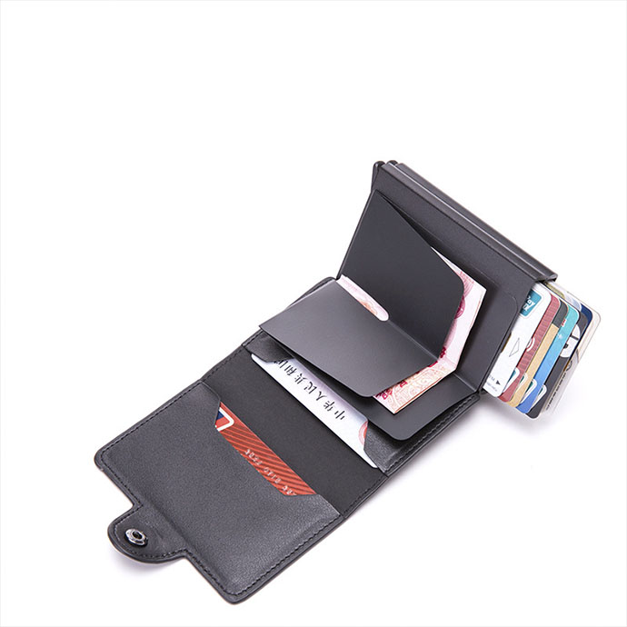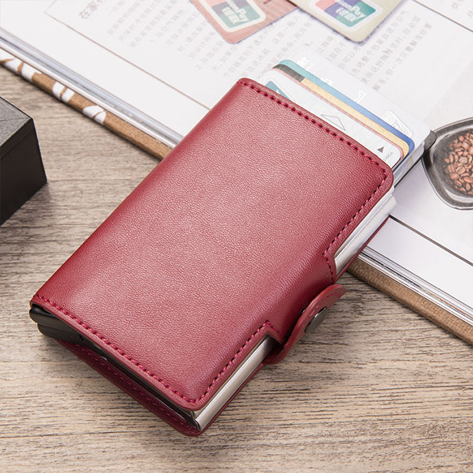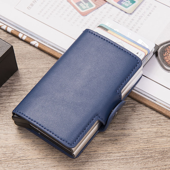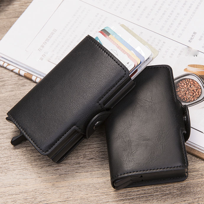 Ví da mini cao cấp có ngăn kim loại là món phụ kiện sang trọng, thiết kế nhỏ gọn, tinh tế và tiện lợi. Với chất liệu da PU cao cấp kết hợp lõi nhôm chống từ, sản phẩm giúp bảo vệ thẻ ngân hàng khỏi trộm dữ liệu RFID, đồng thời mang lại vẻ ngoài thanh lịch, hiện đại. Đây là món quà lý tưởng cho nhân viên, đối tác hoặc khách hàng nam nữ văn phòng.