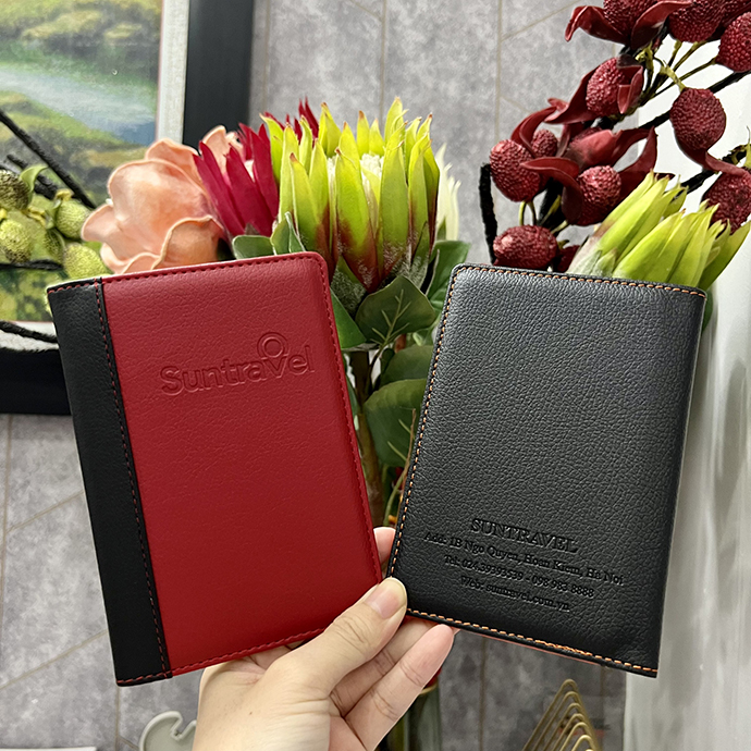 Ví đựng hộ chiếu Suntravel được làm từ da PU bền đẹp, thiết kế phối màu sang trọng (đỏ – đen, cam – đen), khắc logo thương hiệu nổi bật. Đây là quà tặng doanh nghiệp lý tưởng trong ngành du lịch, giúp khách hàng và đối tác lưu giữ hộ chiếu, vé máy bay, thẻ thành viên một cách gọn gàng và chuyên nghiệp.